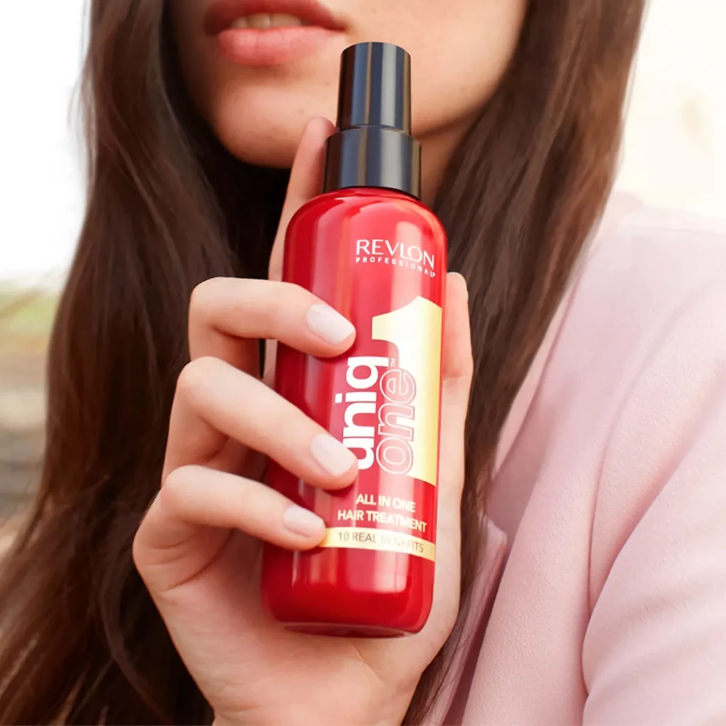 Revlon Uniq One 1 - All in One es la crema de peinar tratamiento que proporciona 10 beneficios reales para el cabello, los cuales realzarán un cabello sublime, espectacular, saludable y protegido.